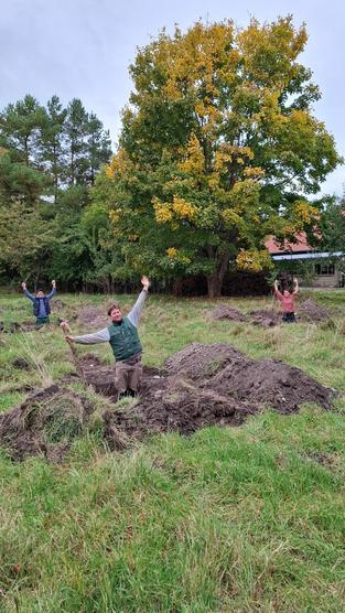 Diejenigen unter euch, die uns schon länger begleiten wissen vielleicht noch, dass wir das Grundstück ziemlich zugewachsen und verwildert übernommen haben. Bei unseren ersten Arbeiten sind uns auch Bäume aufgefallen, die durch Krankheiten beschädigt waren. Mithilfe eines befreundeten Baumpflegers haben wir sorgfältig ausgesucht, welche Bäume fallen mussten. Laut Bundesnaturschutzgesetz müssen wir dafür Ersatzpflanzungen leisten und zwar nach bestimmten Standarts (zu Sorten, Stammumfang, Herkunft, etc.).