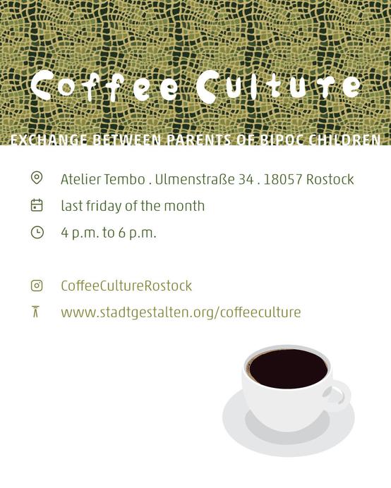 Unsere nächste "CoffeeCulture"-Austauschrunde für Eltern von BIPoC-Kindern findet am 27.10.2023 statt. Fühlt Euch herzlich eingeladen - und schickt uns bitte eine kurze Nachricht, wenn Ihr dabei sein könnt.